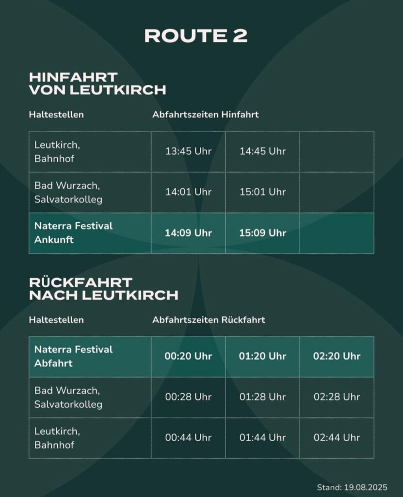 • Leutkirch Bahnhof → Bad Wurzach (Salvatorkolleg) → Naterra Festival
